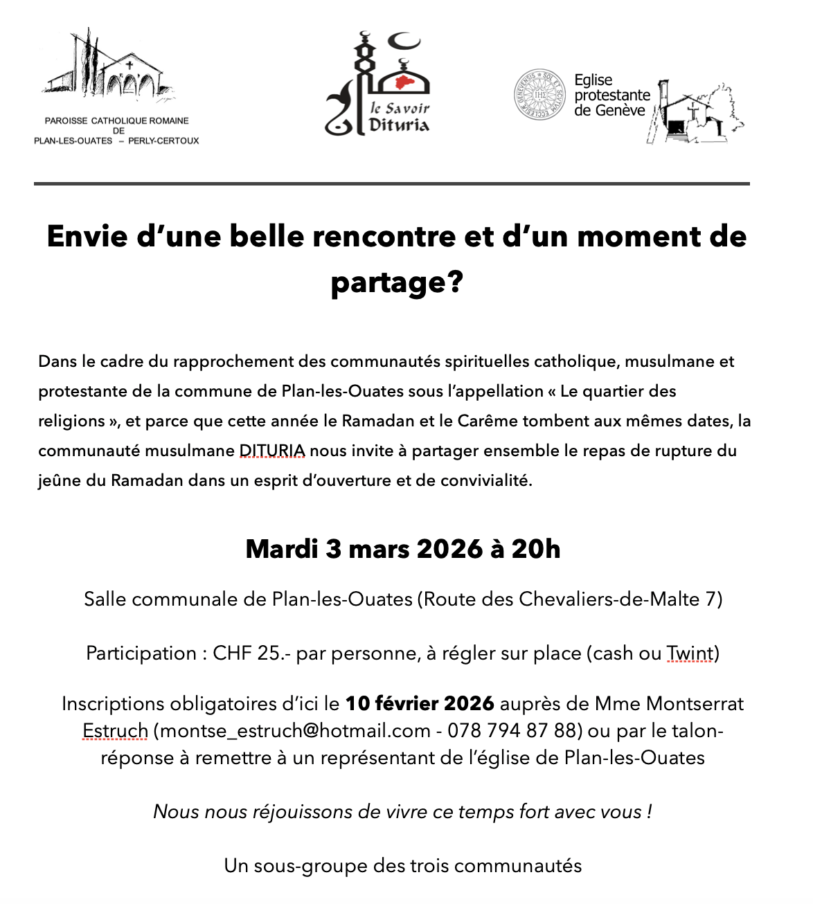 Samedi 31 janvier : Caté 1P/2P, 10h, église/salle de Plan-les-Ouates