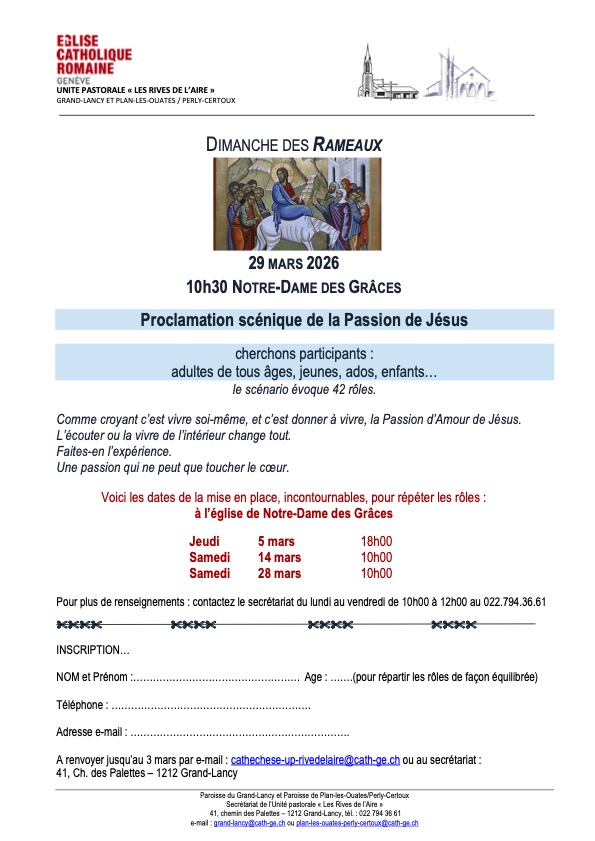– Atelier confection de la Croix (parents caté 6P), dès 16h30, salle de Plan-les-Ouates